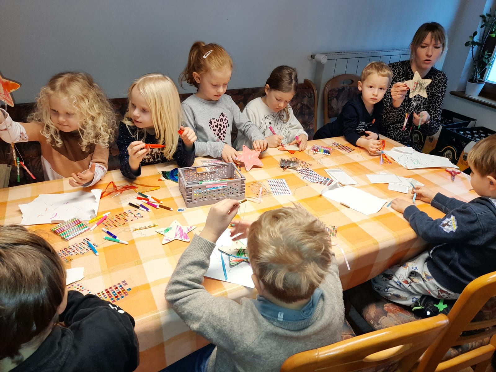 Im Anschluss an das Vorlesen gab es noch eine Bastelaktion. Die Kinder erhielten vorgefertigte Sterne aus Sperrholz, die sie kreativ gestalten konnten – durch Anmalen, Bekleben und Verzieren. Die Sterne durften sie anschließend als Erinnerung mit nach Hause nehmen.