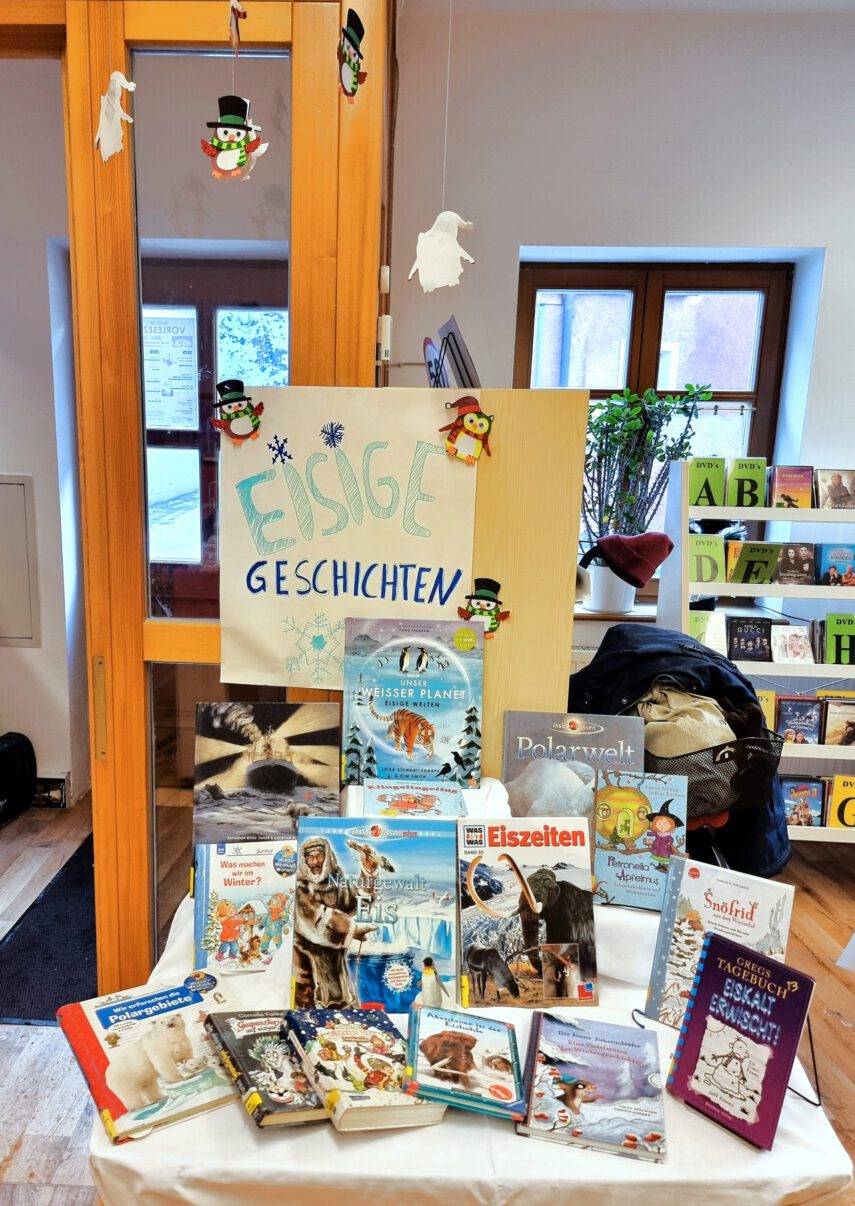 Die Buchausstellung „Eisige Zeiten“ lädt Kinder dazu ein, in frostige Welten einzutauchen und spannende, lustige und informative Geschichten rund um Eis, Schnee und Winter zu entdecken. Vorgestellt werden sowohl Kinderbücher als auch Kindersachbücher, in denen es eisig zugeht – von verschneiten Abenteuern bis hin zu faszinierenden Einblicken in die Welt der Pole und Gletscher.