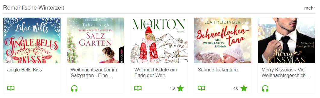 Wenn der Winter mal wieder zuschlägt und Du lieber drinnen bleibst, empfehlen wir Dir unsere E-Books mit vielen Büchern und Hörbüchern für eine romantische Winterzeit. Wir hoffen natürlich, dass es nicht ganz so winterlich wird – aber für den Fall der Fälle ist unsere Onleihe LEO-NORD rund um die Uhr „24/7“ für Dich erreichbar.
