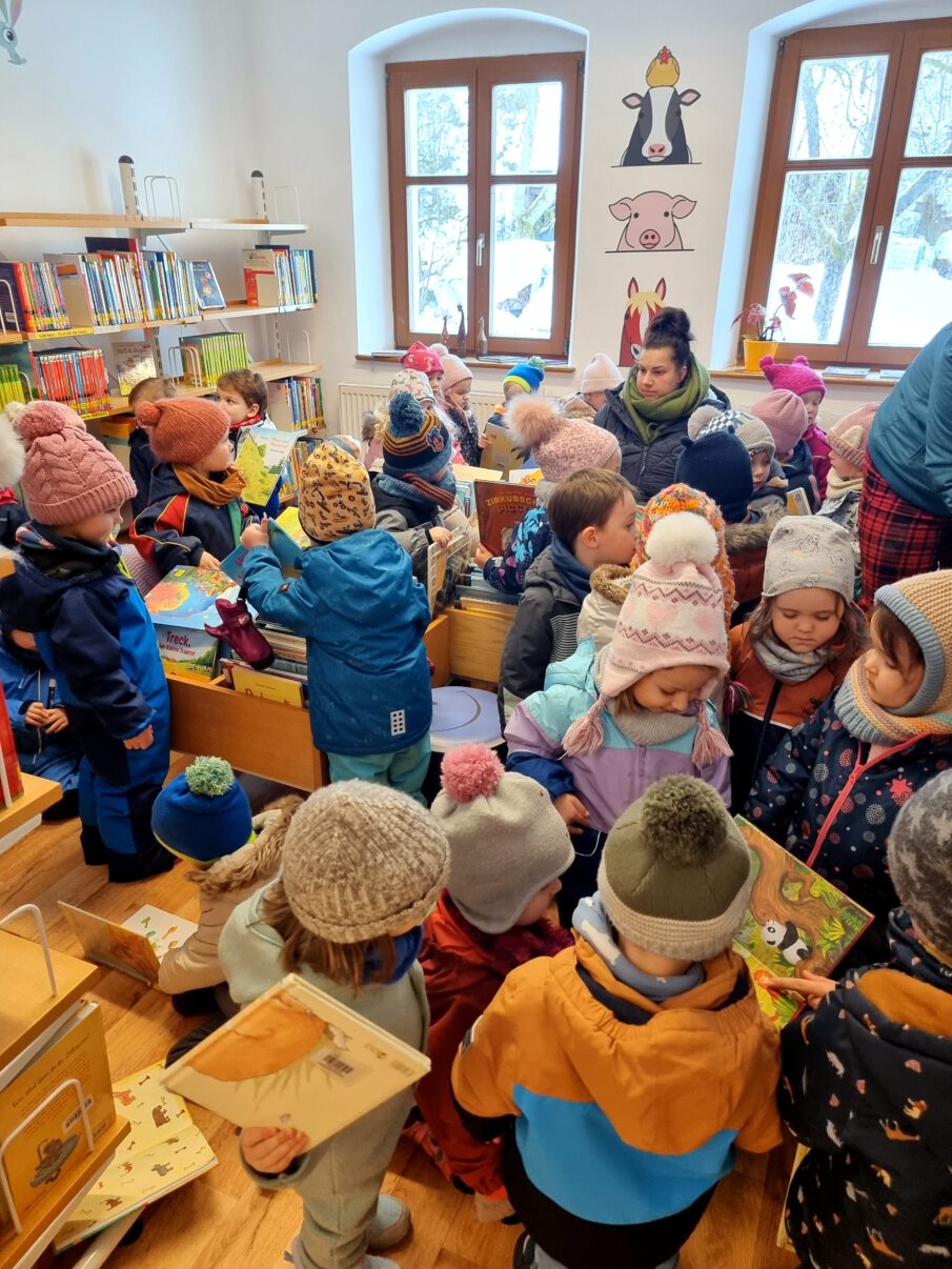 Kinder des Kastler Kindergartens zu Gast in der Gemeindebücherei mit Übergabe der