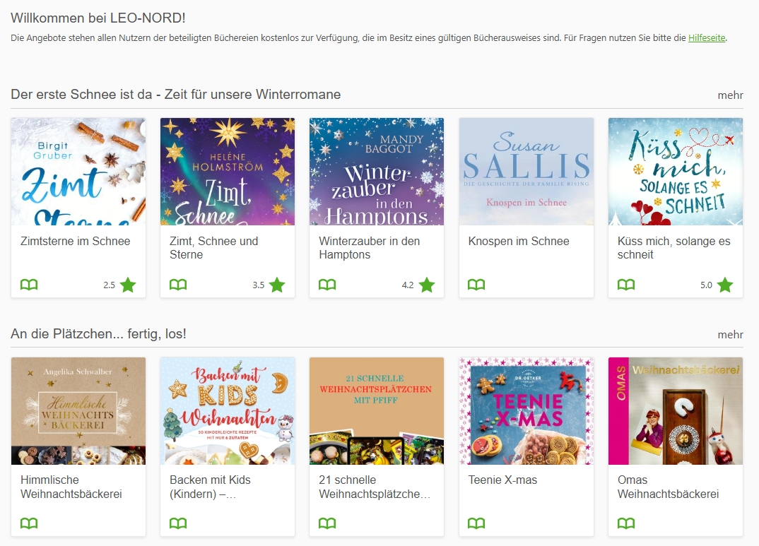 Zahlreiche weihnachtliche Titel stehen Ihnen zudem in unseren E-Books zur Verfügung – etwa unter den Rubriken „An die Plätzchen … fertig, los!“ oder „Der erste Schnee ist da – Zeit für unsere Winterromane“. All dies und vieles mehr entdecken Sie unter www.leo-nord.de